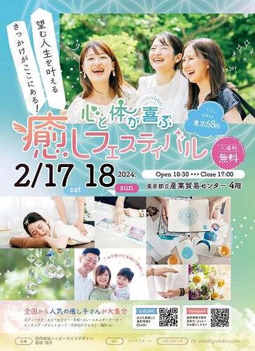 「東京第68回心と体が喜ぶ癒しフェスティバル」 【日にち】2024年2月17(土)・18日(日)【時間】10:30 – 17:00【入場料】 無料!【場所】東京都立産業貿易センター(台東館)4F東京メトロ 銀座線(地下鉄)浅草駅7番出口から徒歩5分東武スカイツリーライン(伊…
